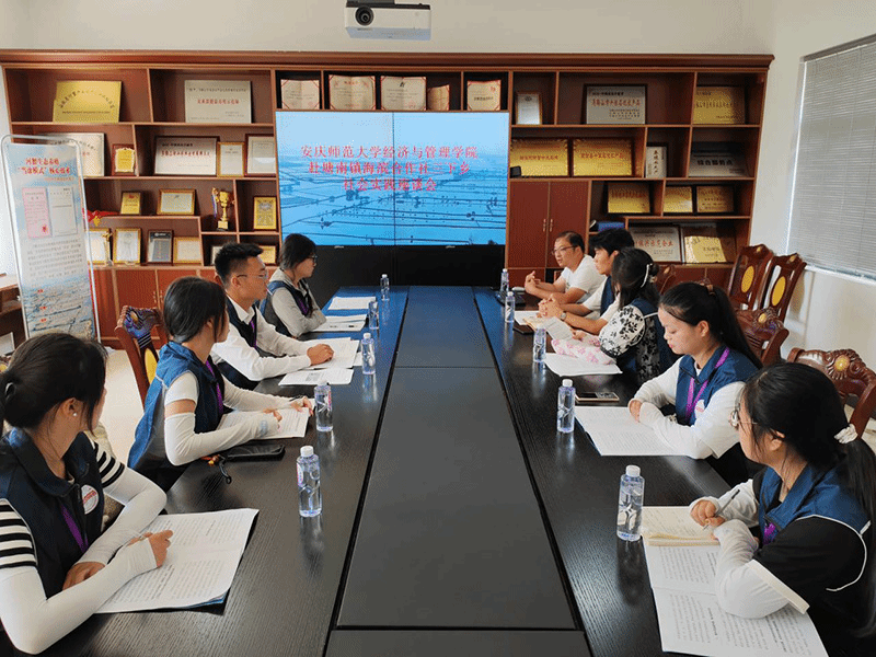 最后,实践团队与海滨合作社负责人祝俊进行座谈。双方就合作社的发展战略、市场竞争情况以及未来合作的可能性等方面进行了深入交流和探讨。实践团成员们赞赏合作社在推动农产品深加工和电商销售方面所做的努力,并针对合作社面临的挑战提出了建设性的意见与建议。