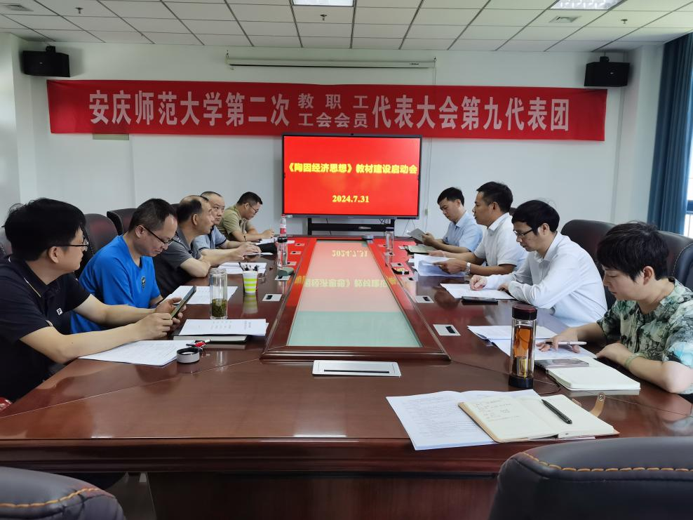 7月31日,《陶因经济思想》教材编写启动仪式于经管学院会议室召开,学校教务处长潘锦云教授应邀参会,学院党政领导、金融工程教研室相关教师参加了会议。项目负责人杨国才教授主持会议。