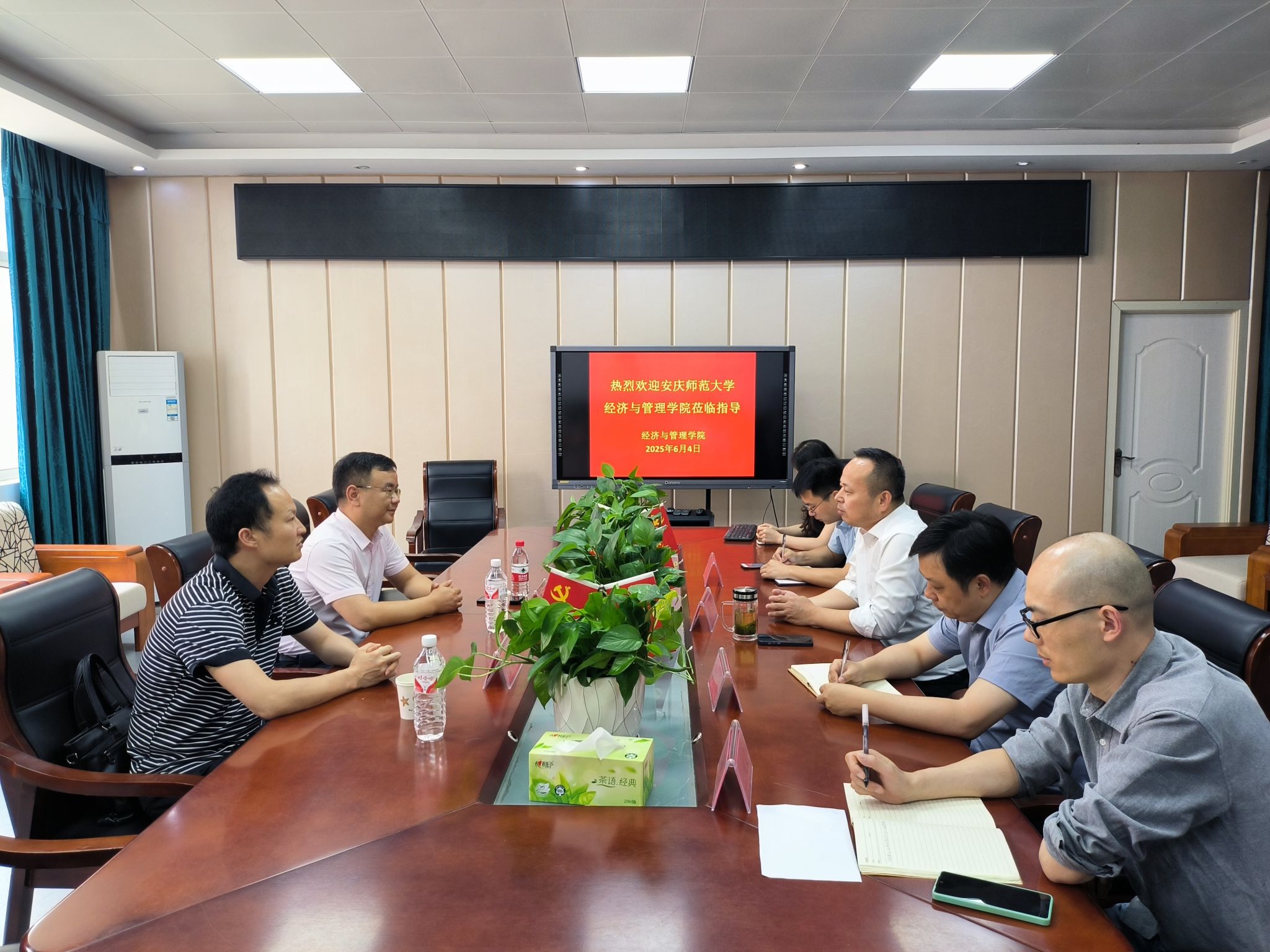 在宣讲会开始之前,学院同淮南师范学院经管学院领导和教师举行座谈会,就学科专业建设、人才培养、硕导遴选等事宜进行交流与探讨。(撰稿、供图:丁玉龙;审核:梁培培)