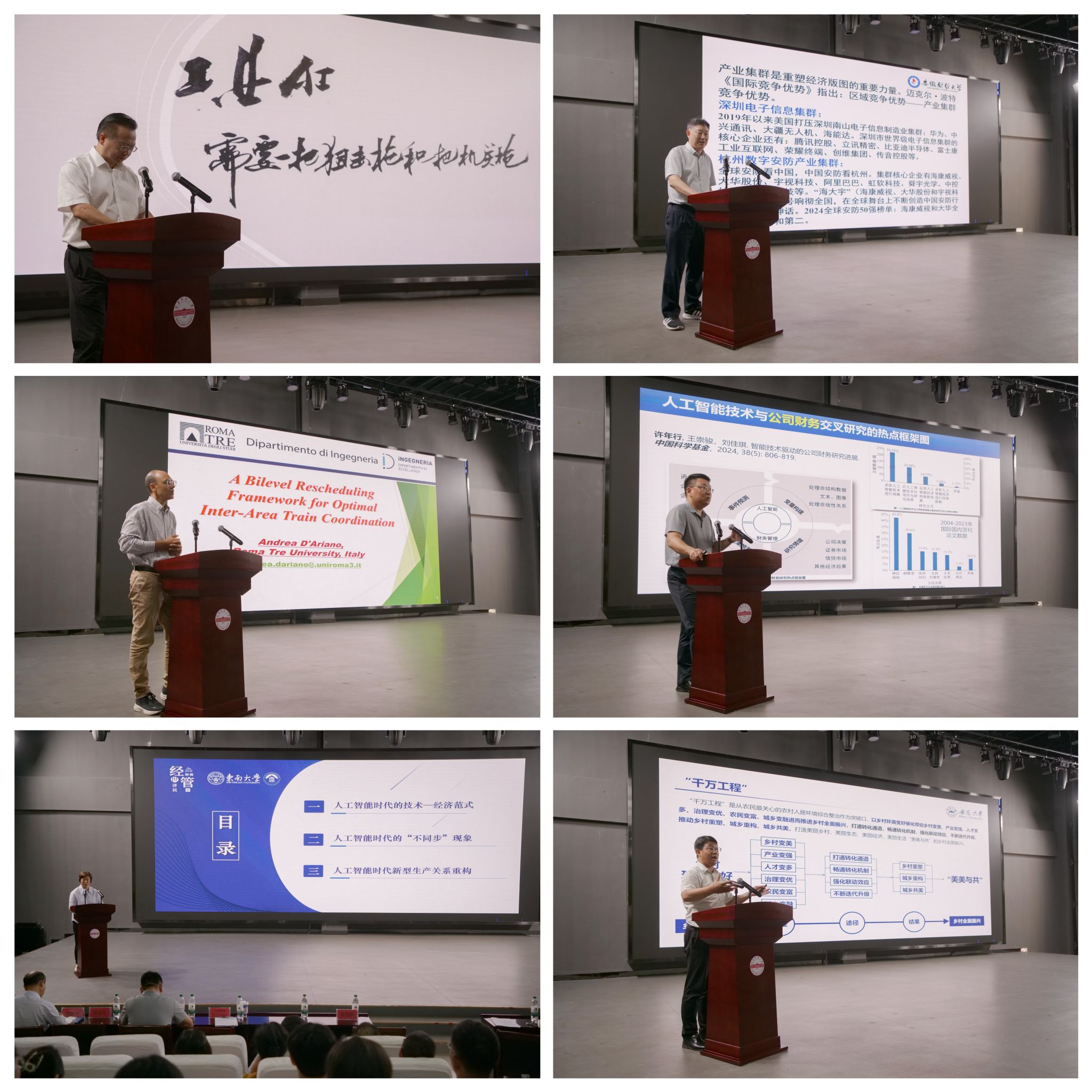大会主论坛上,安徽省工业和信息化厅二级巡视员潘峰、安徽财经大学原副校长冯德连教授、上海外国语大学马宝君教授、罗马第三大学Andrea D'Ariano教授、东南大学国家发展与政策研究院理事长袁健红教授、安徽大学中国乡村振兴研究院院长崔宝玉教授分别作题为《工业AI需要一把狙击枪和一把机关枪》、《长三角培育世界级先进制造业集群的优势与路径》、《人工智能方法赋能商科学术研究探索:以企业社会责任报告分析研究为例》、《一种实现最优区域间列车协调的双层调度框架》、《人工智能时代的新型生产关系探索》、《安徽省践行“千万工程”—成效、挑战与路径》的主旨报告。校学术委员会副主任、*无码流出