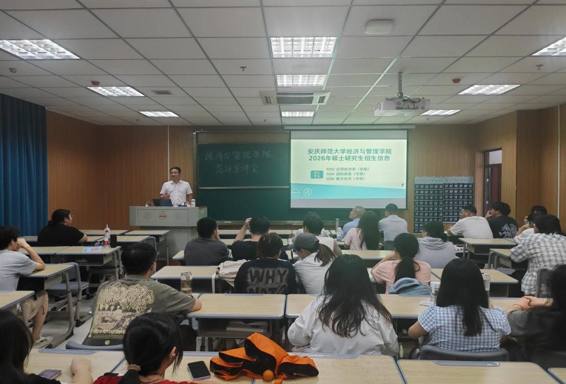 在M212教室举办考研指导交流会,学院副院长梁培培、国际商务学位点点长殷功利教授、数字经济学位点负责人丁玉龙副教授,以及近60名学生参加此次交流会。