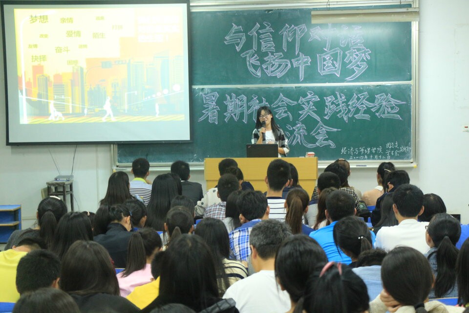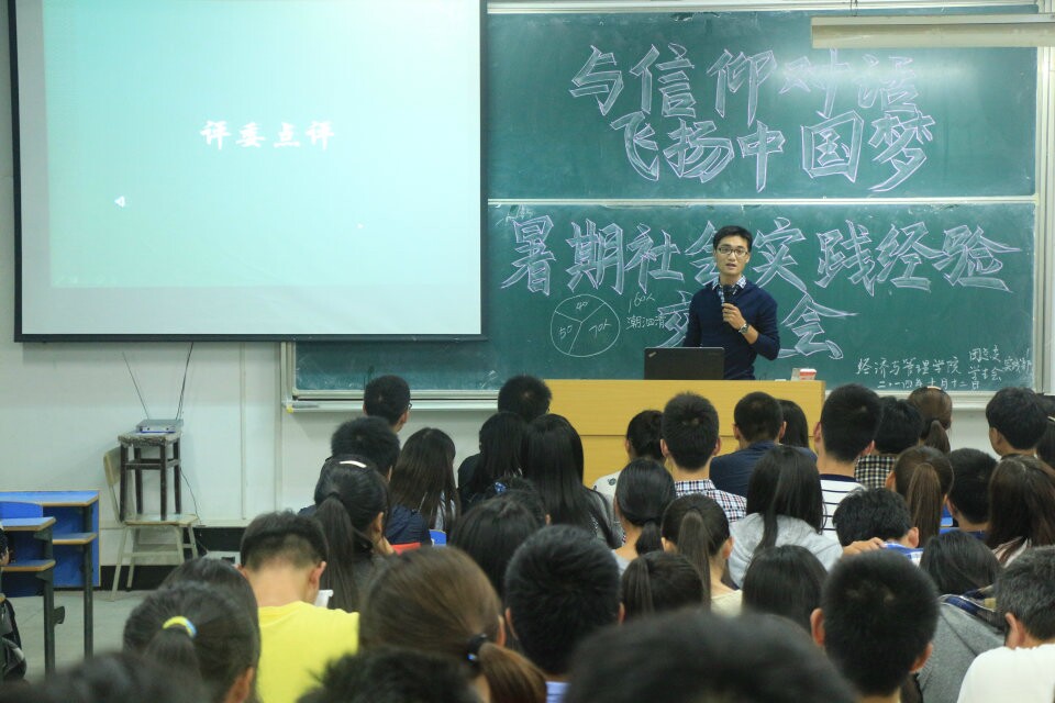 “你不光要做潮流的顺应者,更要成为潮流的引领者!” 10月12日晚经济管理学院暑期实践交流会上,来自2013级财务管理专业的曹曦通过寻访研究校友成长与发展机制分享对创业的感触。