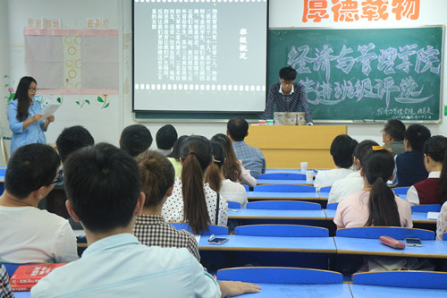 9月23日举办的先进班级评选活动现场。学院党总支书记李亦亮教授、党政办公室主任余江舟老师以及辅导员老师出席活动。