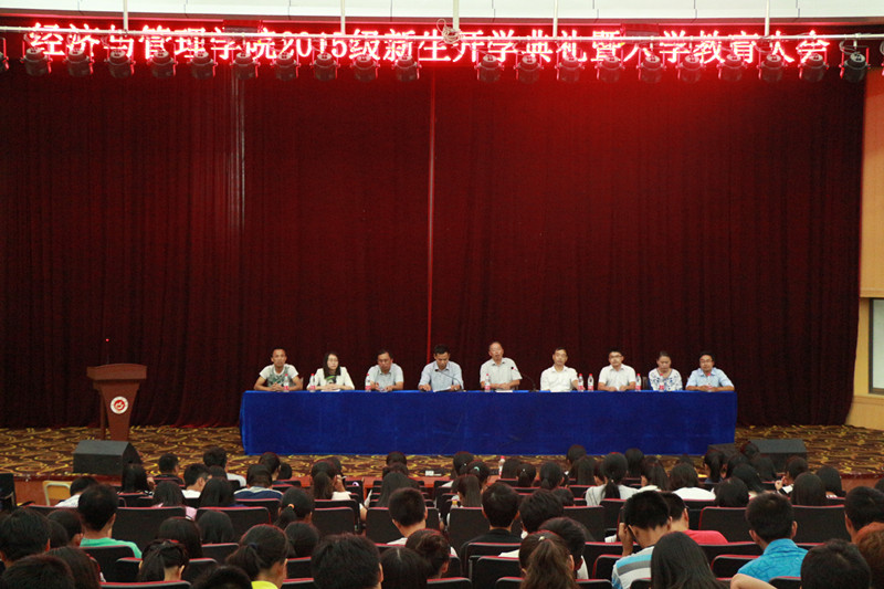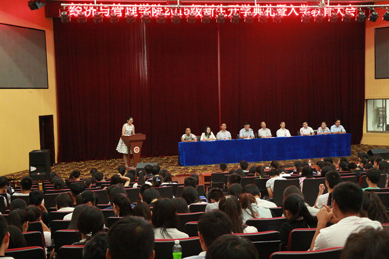 2015级新生开学典礼暨入学教育大会在图书馆东报告厅隆重举行。学院党总书记李亦亮、院长杨国才、黄先军博士及辅导员代表出席会议,学院全体432名2015级新生参加大会。大会由副院长潘锦云主持。