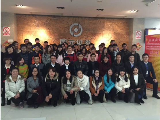 一行的到来表示热烈地欢迎。随后,综合及营销主管陈强带领大家参观了各个部门,并向大家介绍了各部门的功能定位及业务特征,对国元证券当前的营业情况和发展态势作了讲解,梅分析师向大家介绍了近几年金融业的发展概况,对证券行业进行了详细讲解。在互动环节,面对大家感兴趣的证券从业、股票投资等问题作了详细解答,并以自身的从业及人生经历与大家分享了一些生活工作经验,最后他们鼓励学生要学好专业知识,不断提升自己,才能更好的适应社会的发展和行业的要求。