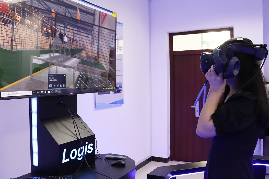 从仓库布局设计,到导入系统呈现具体布局结构,在演示环节,学院教师王天祥讲解了VR智慧仓储实训系统的具体操作流程。他表示,学生们的仓库设计作业可以通过系统直接还原真实面貌,方便教师了解学生对知识的实际掌握情况,更好的开展教学工作。拣选货物、仓库灭火、货架摆放……VR智慧仓储实训系统展现的3D效果,引得学生们直呼“惊奇”,跃跃欲试。
