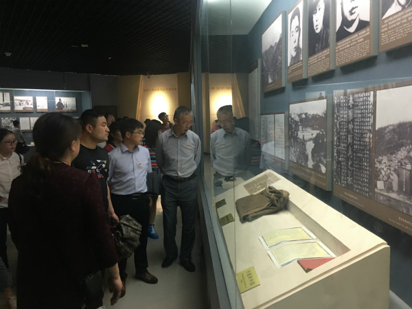 来到新四军史料陈列馆,在新四军革命烈士雕像前,面对鲜艳的中国共产党党旗,全体党员举起右拳庄严宣誓,重温入党誓词。通过讲解员的介绍,大家怀着崇敬的心情观看了珍贵的文献资料、历史图片、实物等,追忆新四军从改编组建到发展壮大的光荣斗争历程,特别是一段段可歌可泣的英雄战史深深震撼着大家的心灵。