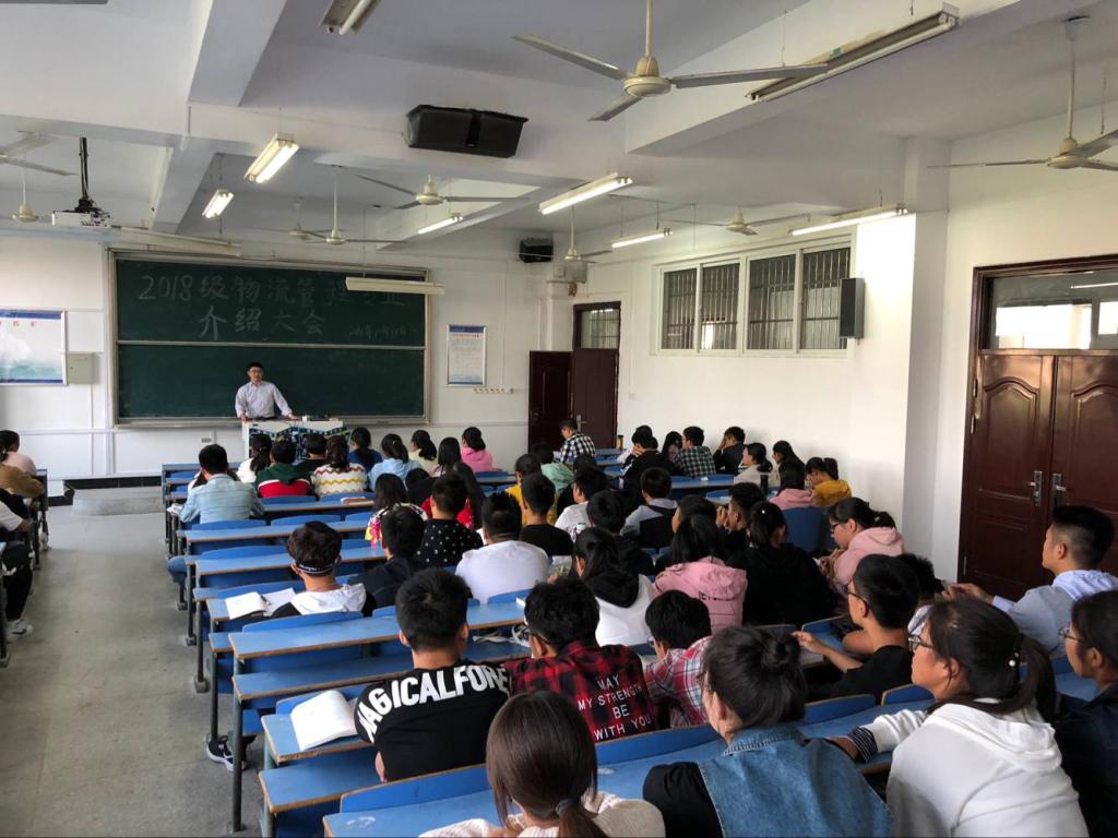 2018年10月12日下午,物流管理专业负责人、副院长黄先军教授于文溯楼304教室为2018级物流管理专业新生开展专业教育,由辅导员贺卫老师主持。