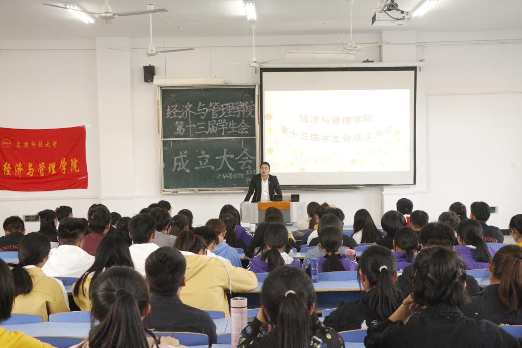 第十三届学生会成立大会在文渊楼208教室召开。学院党委副书记周毅、团总支负责人方蓬、专职辅导员孙栎简出席会议,学生会全体成员参会。会议由学生会干部许宣主持。