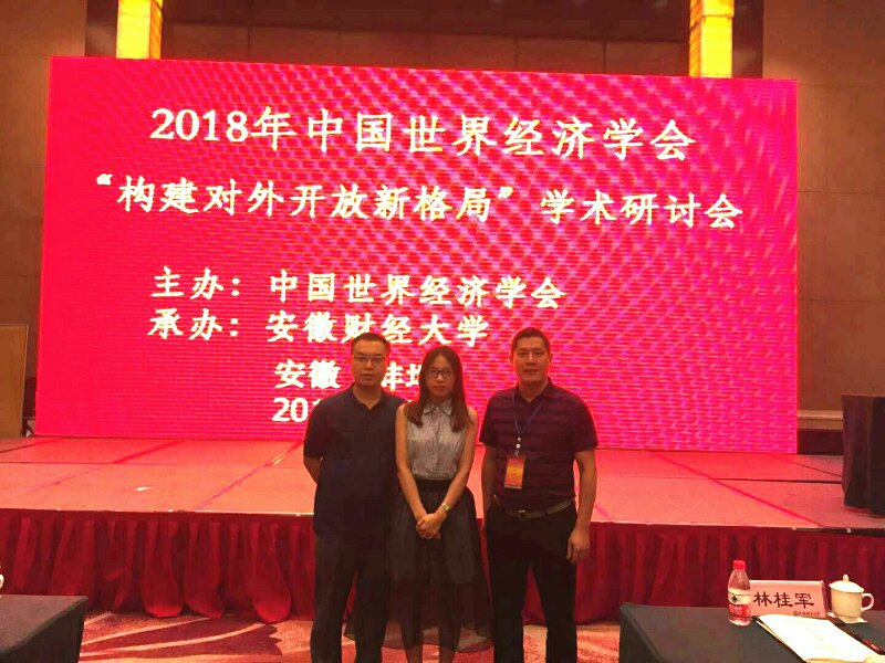教师李裕鸿博士、汪颖颖老师、殷功利博士应邀参加2018中国世界经济学会“构建对外开放新格局”学术研讨会。研讨会由中国世界经济学会主办、安徽财经大学承办,并于9月8日在安徽财经大学举行。大会吸引了来自中国社科院、南开大学、复旦大学、南京大学、东南大学、浙江大学、对外经济贸易大学、安徽省社科院、安徽大学、日本神户大学等国内外著名高校研究机构。