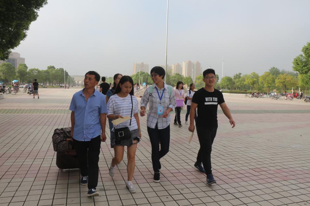 志愿者们热情的为新生引路。在路上耐心的为新生及家长解疑答惑,并介绍校园生活。“之前家里都只有她一个小孩,希望她在大学里多与人相处,学会独立,学习新的东西”市场营销专业新生张雨晴的家长在途中和志愿者说道,这其中既有对孩子的担忧,又饱含着期待。