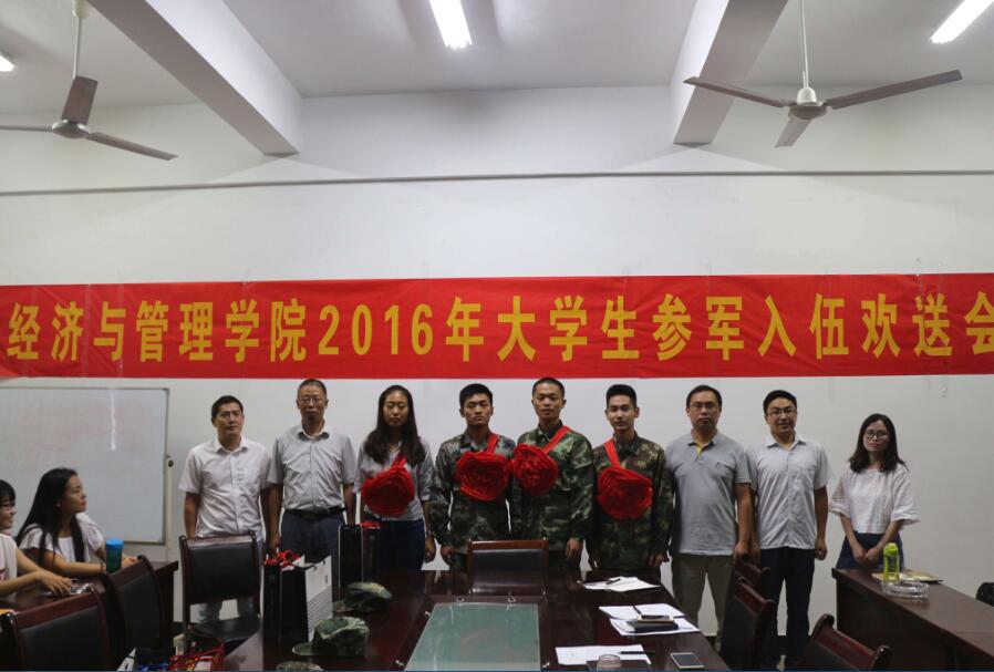 举行2016年大学生参军入伍欢送会。学院党总支书记李亦亮、辅导员代表、4名入伍学生及各班学生代表参加了欢送会。