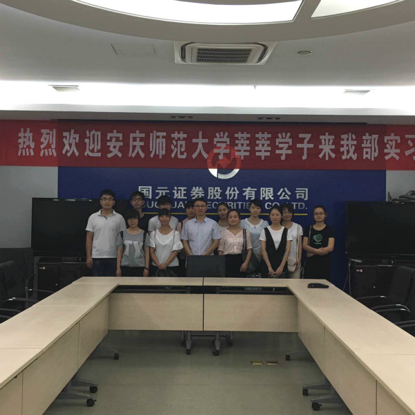2013级金融工程专业12名学生在金融工程教研室主任刘根节博士的带领下赴国元证券安庆营业部,开启为期一个月的暑期实习之旅。