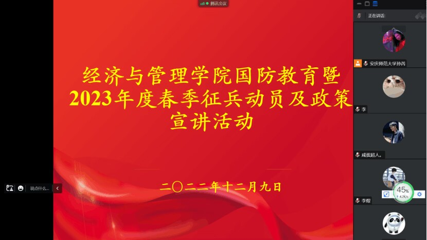 会后,学院组织180余名毕业班男生参加国防教育暨2023年度春季征兵动员及政策线上宣讲活动,学院征兵专管教师就《无码流出