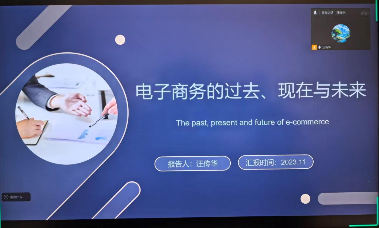 校外实践导师汪传华应邀作题为“电子商务的过去、现在与未来”的学术报告。报告会由副院长徐俊杰主持,统计学、国际商务全体研究生参加。