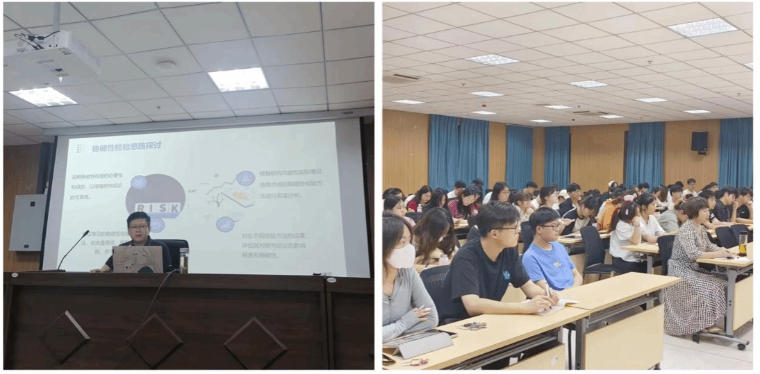2024年5月23日晚上的经管楼112教室里气氛热烈,彭长生教授与120余名金融工程以及2023级金融工程陶因班的同学共聚一堂,共同探讨“金融专业本科实证论文写作”。
