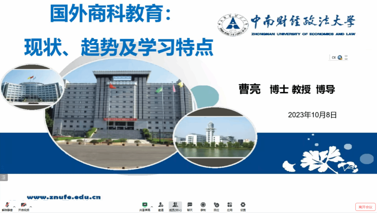 邀请,通过线上方式分享了题为“国外商科教育:现状、趋势及学习特点”的学术报告。硕士生导师、青年教师、研究生及相关专业本科生共100余人参加了交流活动,报告会由殷功利副教授主持。