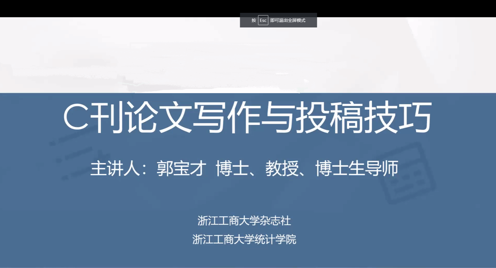 邀请,通过线上方式分享了题为“C刊论文写作与投稿技巧”的学术报告,学院青年老师和研究生共80余人参加了交流活动,报告会由徐俊杰教授主持。