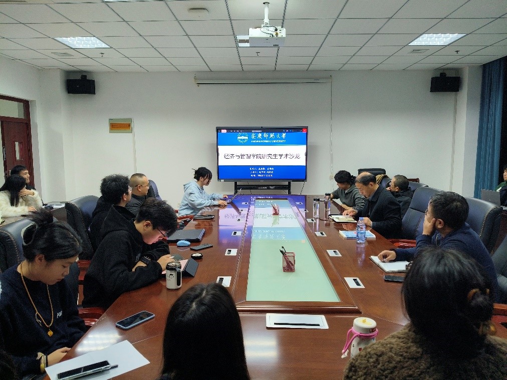 本次学术沙龙活动由2023级研究生左睿涵和庞勤勤分别就《培育现代农业的“领头雁”,点燃乡村振兴的“新引擎”——企业家精神、动态能力对合作社绩效的影响及对策研究》《数字贸易及互联网普及率对经济高质量增长的影响研究》这两个主题进行了学术汇报。