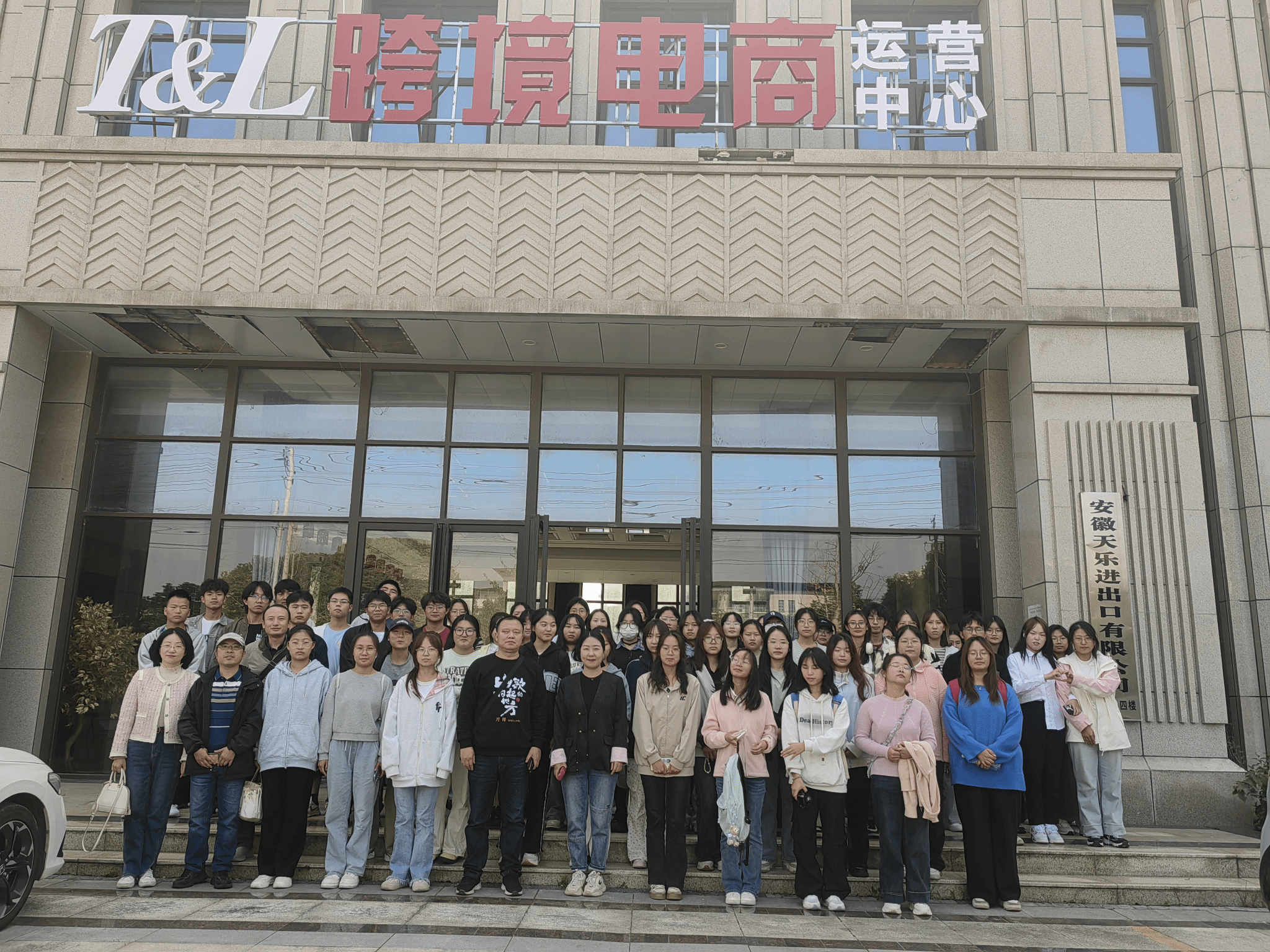 随后,师生一行来到安徽天乐进出口有限公司。该公司是一家主营国际贸易业务和跨境电商服务的企业,近年来公司成功开发了北美、南美、非洲、欧洲以及“一带一路”沿线多个国家的客户,公司负责人许经理首先带领师生们参观体验了公司跨境电商运营中心,悉心地为师生们介绍了公司的运行情况,并向大家讲授了公司从事进出口业务的实际操作与应用等内容;在交流互动环节,许经理还热情解答了同学们的提出的一些问题。