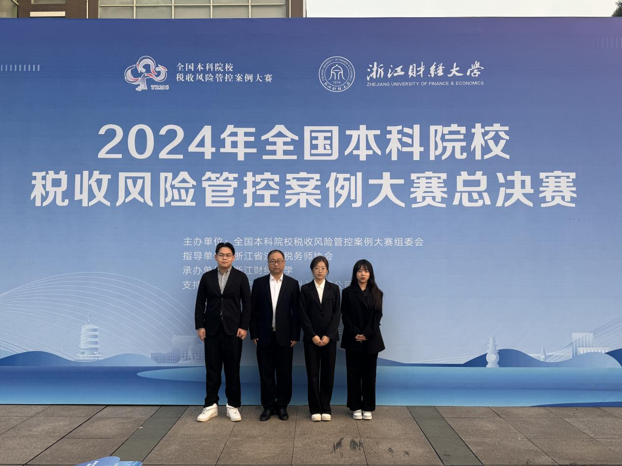 近日,2024年全国本科院校税收风险管控案例大赛现场总决赛在浙江财经大学成功举办,由无码流出 卞从胜、秦思怡、袁悦三名学生组成的“V我200”团队发挥出色,荣获全国二等奖,并获得就职推荐信和入职面试通知书,取得了学院在该项赛事的最好成绩。指导教师甄德云荣获总决赛优秀指导教师。