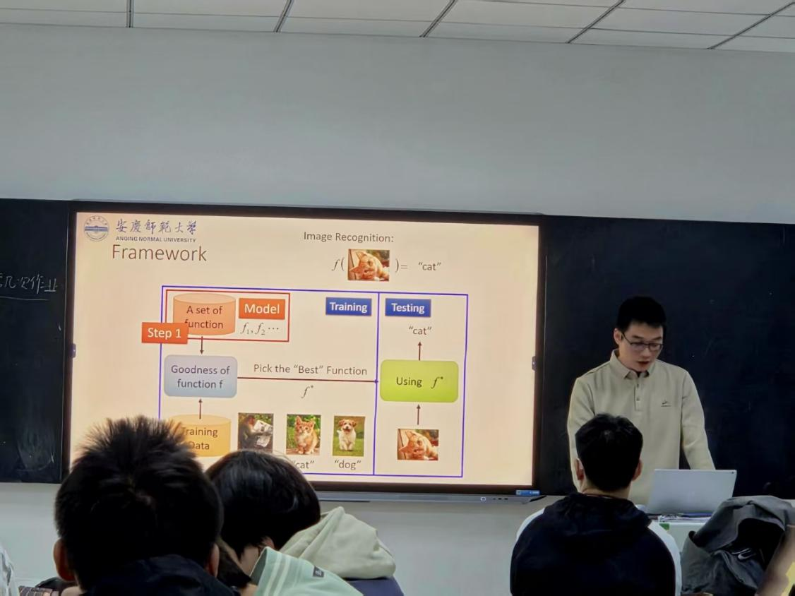 傅维刚博士本次试讲内容为“机器学习简介及其应用”。他从河狸筑坝、本能与规则、聊天机器人“听错话”等生动案例切入,对传统手工规则与数据驱动的机器学习方法进行了对比,形象说明了让机器“学会学习”的重要性。随后,他带领学生逐步搭建机器学习的技术图谱,并展示了使用Python实现金融场景中数据建模与房价预测的基本思路。此外,课程内容还介绍了中国学者为机器学习的发展所作出的推动贡献,在知识讲授的同时,增强了学生的“科技自信”与“民族自信”。