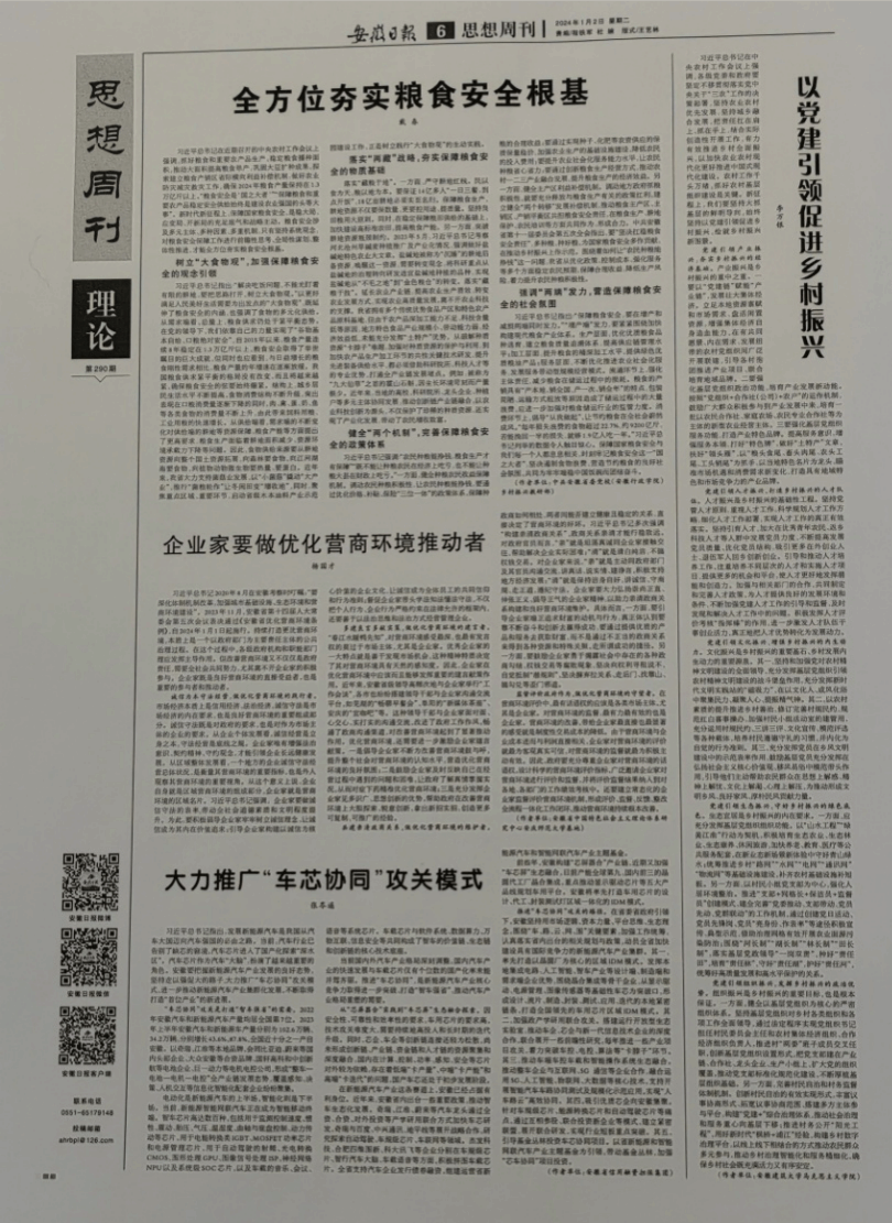 1月2日,《安徽日报(理论板)》以“企业家要做优化营商环境推动者”为题,转载刊发了省政协委员、无码流出