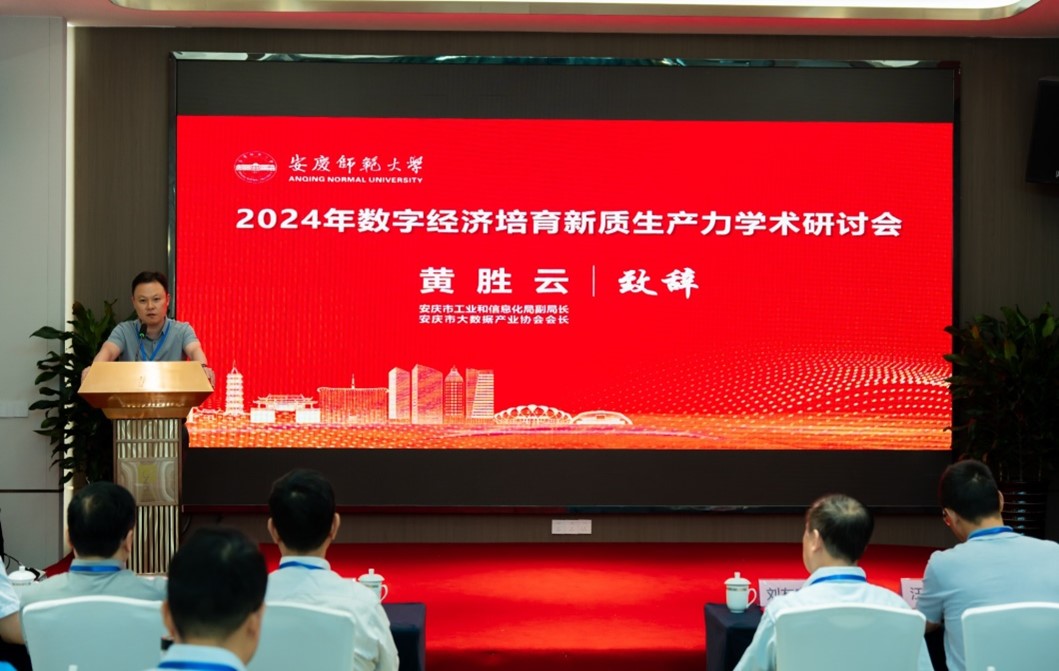 、安徽省数字经济研究中心联合承办的 “2024年数字经济培育新质生产力”学术研讨会成功举办。校党委常委、副校长刘友忠,安庆市工信局副局长黄胜云,安徽省数字经济学会副会长李晓翔教授出席开幕式并致辞。校党委常委、副校长吴琼会见了与会专家,并开展了座谈交流。科研处、服务经济社会发展处、教务处、研究生院、国际交流与合作处等部门负责人应邀参会。
