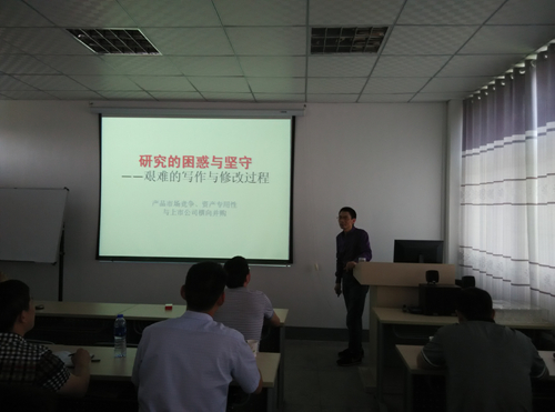 林教授在报告中分享了他对会计实证研究的心得体会,以一篇科研论文的撰写和修改过程为例,详细介绍了论文选题、结构设计、文献综述、假设提炼、实证检验及讨论分析的一般范式,特别是结合这篇论文六次审修经历,回顾了他们是如何根据审稿人意见,不断改进文稿直至满足审稿要求。本场报告历时将近两个小时,内容十分详实,现场师生不仅学习了会计实证研究的一般范式,更感受到了林教授严谨的治学态度和执着的科研精神。
