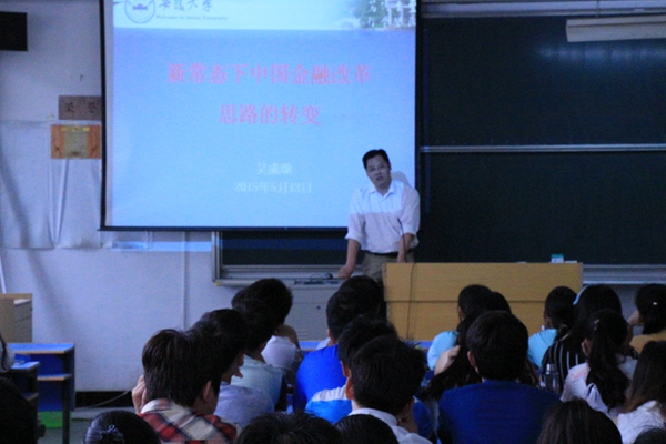 吴教授首先归纳了金融改革面临的新常态,随后结合自己主持的科研项目归纳了当前我国金融领域存在的问题及风险,指出金融改革思路的转变集中体现在从强调金融要素转向强调金融服务,吴教授还与现场师生分享了自己总结的金融改革5个原则及12个重点领域,并提出若干政策建议。吴教授的报告幽默风趣,旁征博引,师生反映热烈。潘锦云教授在最后点评时,高度评价了本场报告的学术水准,同时勉励金融工程专业学生加强专业理论学习,关注我国金融改革动态,不断提升金融知识视野。
