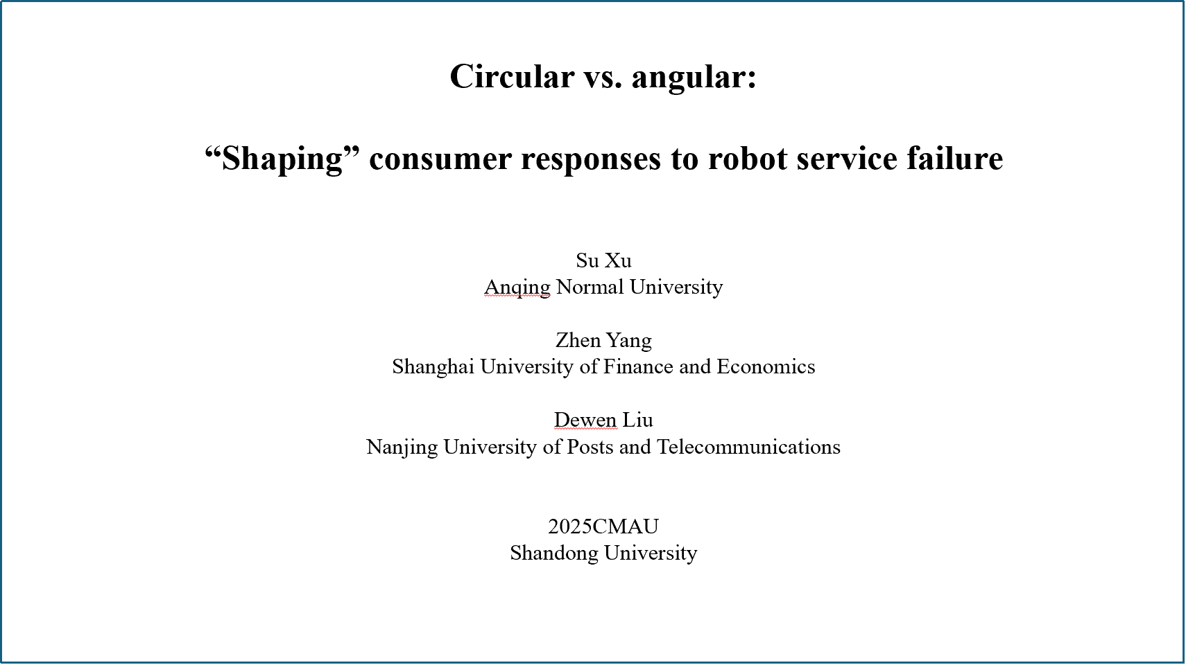 青年教师徐苏作了题为《Circular vs.angular:“Shaping”customer responses to robot service failure》的学术报告。