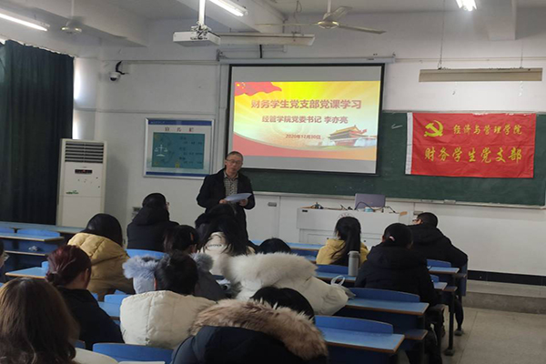 12月30日下午2:30,财务学生党支部在C504教室上党课。党课由学院党委书记李亦亮主讲,财务学生党支部书记张敏老师及全体党员参加。