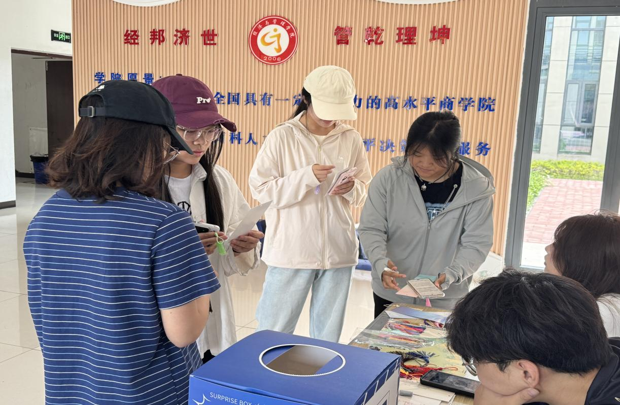 活动现场气氛热烈,同学们参与热情高涨。在工作人员的指导下,大家专注地挑选制作书签的材料,手中的彩笔在制作材料上灵动流转。大家神情认真,有的精心勾勒书签轮廓,有的思索着温暖励志的话语。每一枚书签都独具匠心,承载着创作者的美好期许。完成书签制作后,同学们将精心制作的书签投入“漂流箱”中并有序地抽取他人的书签,每一次抽取都像是开启一份未知的惊喜。国际经济与贸易专业2024级2班的黄华同学表示:“在制作书签的过程中,我感受到了创作的快乐,抽取到的书签也给我带来了满满的温暖和力量。”