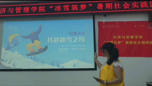 团队成员结合PPT,介绍了社会实践的初衷和计划安排。大家在交流中了解到万科松花湖度假区、北大湖滑雪度假区等大型滑雪场的建设运营情况,直接带动周边乡村发展。当地村民通过从事餐饮服务、安保、滑雪教练等工作增加收入,周边村民利用自有资源参与开发狗拉雪橇等特色冰雪体验项目,进一步拓宽增收渠道,冰雪产业已成为推动乡村振兴的重要力量。工作人员还对同学毕业后回到家乡、助力家乡发展,表达了热切的期待。特别指出,随着冰雪产业的升级和技术进步,雪场运营对缆车维护、雪道养护、冰雪设施管理等高技能专业人才的需求日益迫切,亟需更多掌握专业知识的青年才俊加入,为冰雪经济的持续繁荣注入新鲜血液和创新活力。