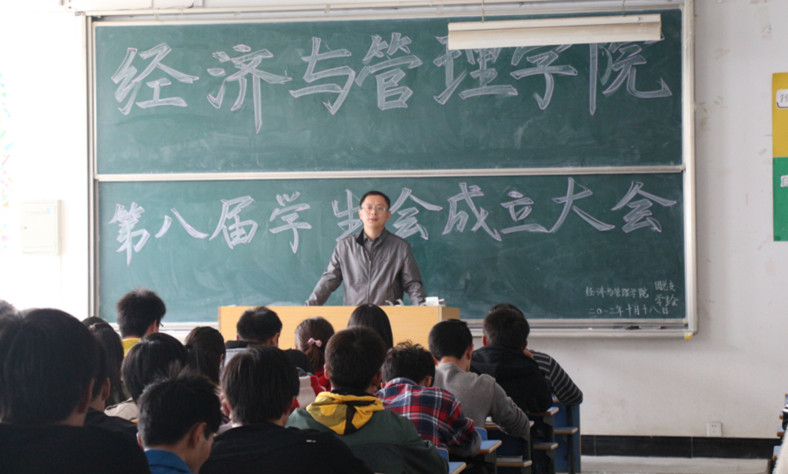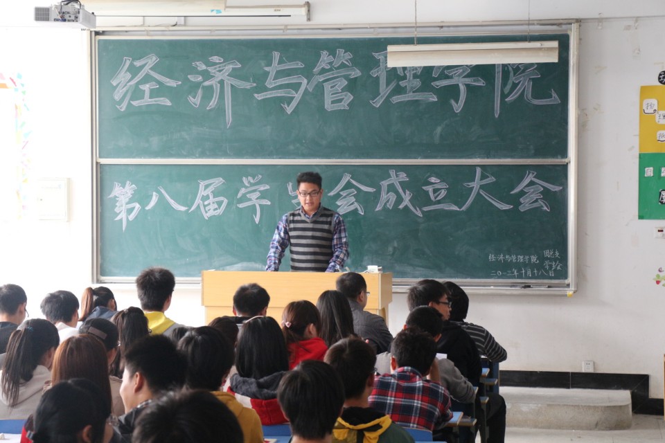 在文溯楼401教室举行第八届学生会成立大会。学院党总支副书记徐晓宁老师、团总支副书记张军老师级第八届全体学生会成员参加会议。