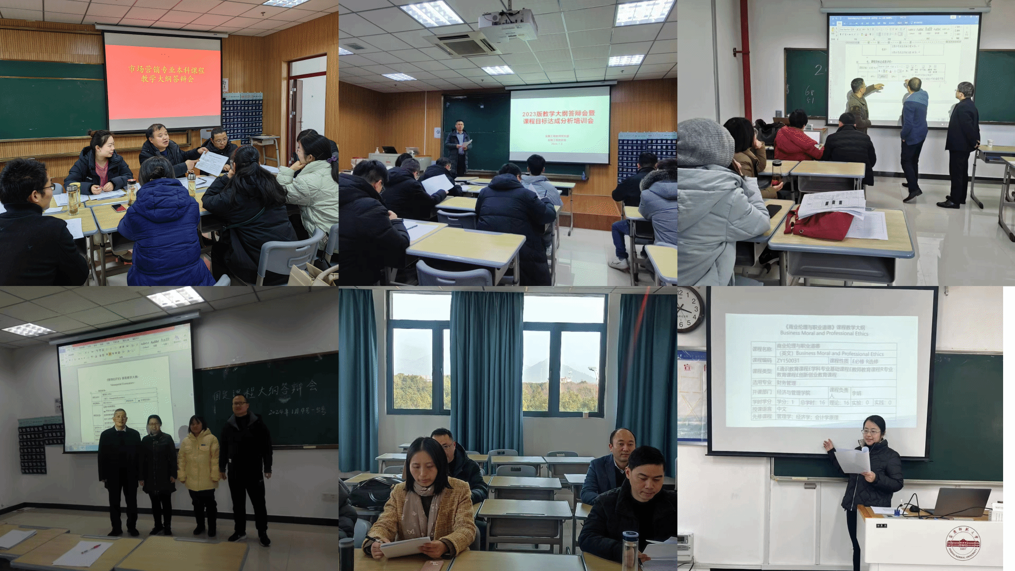 金融工程、国际经济与贸易、市场营销、财务管理、物流管理、电子商务六个教研室分别陆续开展2023版本科课程教学大纲答辩工作。